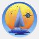 Du Capitaine aux mains du pont, des idées et des produits de cadeaux pour la voile. Voile vectorielle design avec catamaran, coucher de soleil, mouettes et rose de boussole.