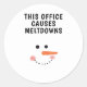 Ajoutez un peu d'humour à votre journée de travail avec ceux-ci Ce Bureau Causes Meltdowns Drôle Citation Snowman Classic Round Stickers. Elles ont un design moderne minimaliste avec un visage de bonhomme de neige mignon et la phrase humoristique. Idéal pour décorer vos papiers et carnets de bureau !
