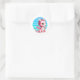Ce design est composé d'un dragon rose mignon avec de grands yeux bleus et un petit nez. Le dragon a deux petites cornes sur la tête et une rangée de pointes sur le dos. Le dragon a deux petites ailes et une longue queue. L'arrière - plan est un cercle bleu avec des rayures horizontales. Cet autocollant est parfait pour toute personne qui aime les dragons, les imaginaires, les animaux ou le style kawaii.