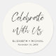 Un sticker chic crème pour vos invitations de mariage et enregistrer les dates avec "Celebrate With Us" dans un script moderne et vos noms et date dans une simple et élégante typographie serif.