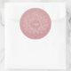 Joli autocollant de mariage feuille dessiné à la main. Idéal pour embellir votre papeterie, cadeaux ou faveurs en rose poussiéreux avec texte blanc et design feuille. © Cercle original de dessin et de dessin de couronne feuille par Sarah Trett pour www.mylittleedenweddings.com sur zazzle.