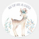 Sticker Rond Cerf et fleurs d'hiver personnalisés à l'aquarelle