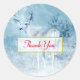 stickers Merci avec l'image d'un cerf majestueux en hiver. Un arrière - plan filtré bleu glacé donne à cette photo un air froid d'hiver avec une sensation magique. Un cerf noble se dresse sur une colline avec des pins d'hiver en arrière - plan.