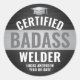 Sticker Rond Certified Badass Welder Party Black