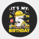 Sticker Rond C'est mon 5e anniversaire Boy Construction Excavat