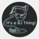 Cet auto-collant aurait l'air parfait sur l'équipement, les caisses de musique, ou tout endroit que vous voulez représenter "c'est un truc de DJ !" Customisez-le avec votre propre message.