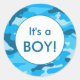 Sticker Rond C'est un GARÇON ! Bleu camo faire-part faveur auto
