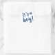 La main a écrit "It's a Boy" en bleu marine contre un arrière - plan blanc immaculé. Utilisez comme étiquette de faveur, autocollant de faire-part et sceau d'enveloppe...tant d'usages !