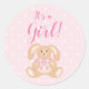 Sticker Rond C'est une fille Baby shower mignonne lapin rose