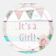 Sticker Rond c'est une fille, un nouveau bébé, faire-part de na