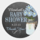 Populaire chic, vintage tableau de bord look-Baby shower invité préférez autocollant en bleu. Un bocal rustique en maçon rempli de fleurs bleues, un tableau de bord arrière - plan. Customisé avec le nom de la mère, la date du baby shower et "merci". Ajoutez des produits correspondants ! Visitez mon magasin "La princesse hongroise" à l'adresse www.zazzle.com/hungaricanprincess*. Regardez dans ma catégorie de service "Oh Baby". Félicitation !