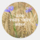 Autocollant de style rustique avec une photo de champs de blé avec de beaux fleurs de maïs (bouton du célibataire). Le blé symbolise la prospérité, la naissance et l'espoir. Le Cornflower est associé à la richesse et à la bonne fortune. S'il vous plaît, personnalisez-le, en ajoutant votre propre message.