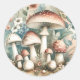 Sticker Rond Champignons et Fleurs Aquarelles Rétro Fantaisiste