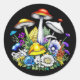 Aquarelle colorée illustration d'un champignon et de fleurs en jaune, rouge, violet et bleu.