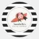 Cet autocollant de mariage chic et élégant présente un grand chapeau rouge de style derby avec des roses et un nœud/ruban noir sur fond blanc avec des rayures noires. Personnalisez selon vos besoins. Vous pouvez trouver plus de produits assortis dans ma boutique.