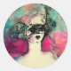 Sticker Rond CHARME /Dame Avec Masque Rose Vert Turquoise