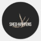 Sticker Rond Chasseur de wapitis Shed Happens Drôle Chasse de c