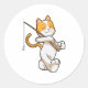 Sticker Rond Chat à la pêche avec bâton de pêche