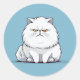 Sticker Rond Chat blanc gras grincheux sur un Arrière - plan bl