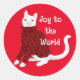 Sticker Rond Chat blanc mignon en Sweat de Noël Rouge