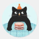 Sticker Rond Chat d'anniversaire avec gâteau d'anniversaire et