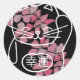 Sticker Rond Chat de bonne chance japonais avec fleurs Sakura r