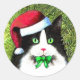 Sticker Rond Chat de Noël Tuxedo avec chou