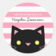 Sticker avec un mignon chat noir, et rayures rose et blanc. Ce livre appartient à l'autocollant.