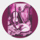 Sticker Rond CHAT MUSICAL, rose Fuchsia violet et blanc