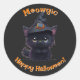 Sticker Rond Chat noir magique d'Halloween blanc mignon