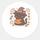 Sticker Rond Chat noir mignon avec Casquette sorcier - Kawaii H