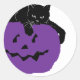 Sticker Rond Chat Noir Sur Un Citrouille Violet