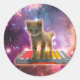Sticker Rond Chat sur synthétiseurs dans l'espace