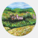 STICKER ROND CHÂTEAUX EN CHIANTI PAYSAGE, CHAMPS DE FLEURS JAUN