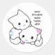 Ces autocollants ont une image de deux adorables chatons blancs, l'un avec des rayures bleues et l'autre violet, et les mots : les bonnes pensées font des jours heureux.