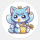 Sticker Rond Chatte fée mignonne mangeant du miel cru