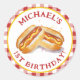 Ajoutez la touche de finition parfaite à votre fête de cuisine avec cet autocollant rond à thème hot-dog ! Doté d'une illustration amusante de Francfort et d'un arrière - plan en vichy rouge classique, il est idéal pour sceller les sacs de faveur de la fête, décorer des enveloppes, ou étiqueter les tasses à boire à un barbecue pour enfants ou à une fête d'anniversaire de style pique-nique.