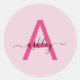 Sticker Rond Chaud rose moderne Script Girl Monogramme Nom