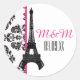 Sticker Rond Chaud rose monogramme Damask Tour Eiffel Mariage
