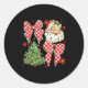 Sticker Rond Checkered Coquette Bow Santa Claus Christmas Holid