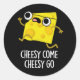 Sticker Rond Cheesy Come Cheesy Go Funny Food Pun Dark BG
