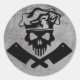 Un crâne noir cool portant une toque, au-dessus des clavettes croisées.