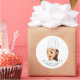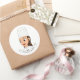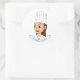 Autocollant rond personnalisé avec l'illustration d'une femme souriante heureuse en casquette et uniforme du chef, avec modèle texte personnalisable pour votre nom ou message