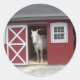 Sticker Rond Cheval Blanc Dans La Grange Rouge