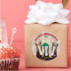 Trio de chevaux amusant décoré avec des lumières de Noël, casquette d'hiver et tenant un sucre de canne sur cet autocollant pour les animaux drôles ou amoureux de l'ouest, personnalisé avec votre message de vacances amusant et votre nom