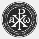 Icône Chi-ro christogramme. Icône Vector monochrom avec couleur personnalisable. Couleur arrière - plan personnalisée. Deux champs de texte personnalisés sur cercle.