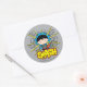 Sticker Rond Chibi Superman Frappant À Travers Un Mur De Brique