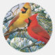 Chic Beaux Cardinaux Rouges Et Sticker Classique De Noël De Neige Rond.