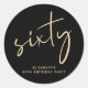 Élégant autocollant noir pour vos invitations à la fête du 60e anniversaire, faveurs de fête, cartes de remerciement, etc, avec "soixante" présenté dans un script d'or chic.