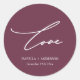 Sticker Rond Chic Burgundy Love Script avec Mariage de nom